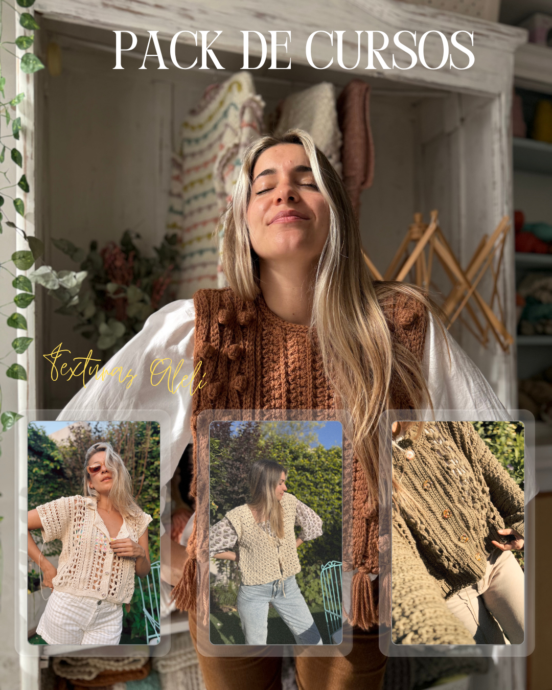 Aprendé a tejer TRAMAS Y TEXTURAS románticas a crochet y a crear prendas auténticas y llamativas ¡En mis cursos te llevo de la mano, paso a paso y te enseño todos mis secretos sobre el crochet!